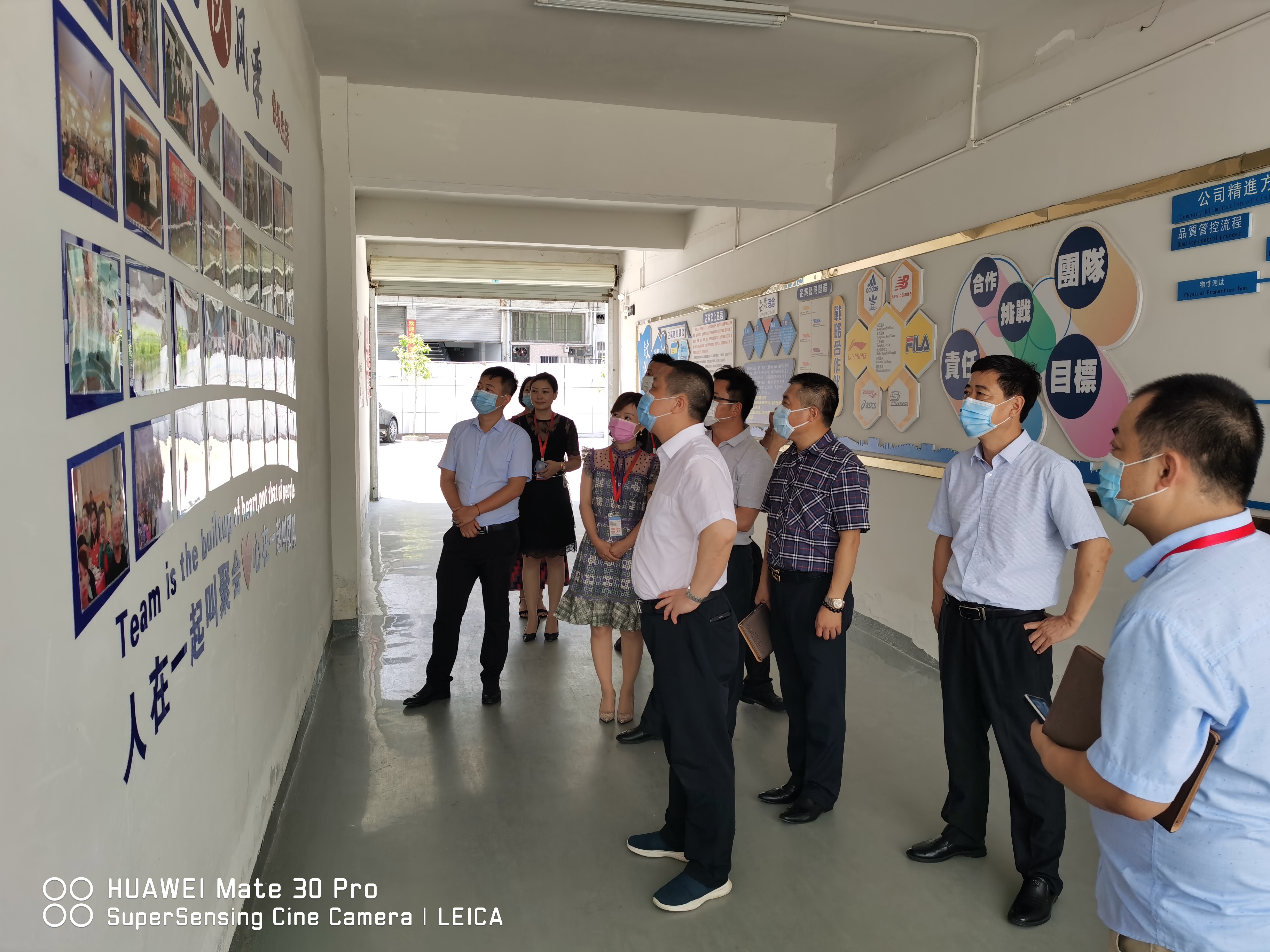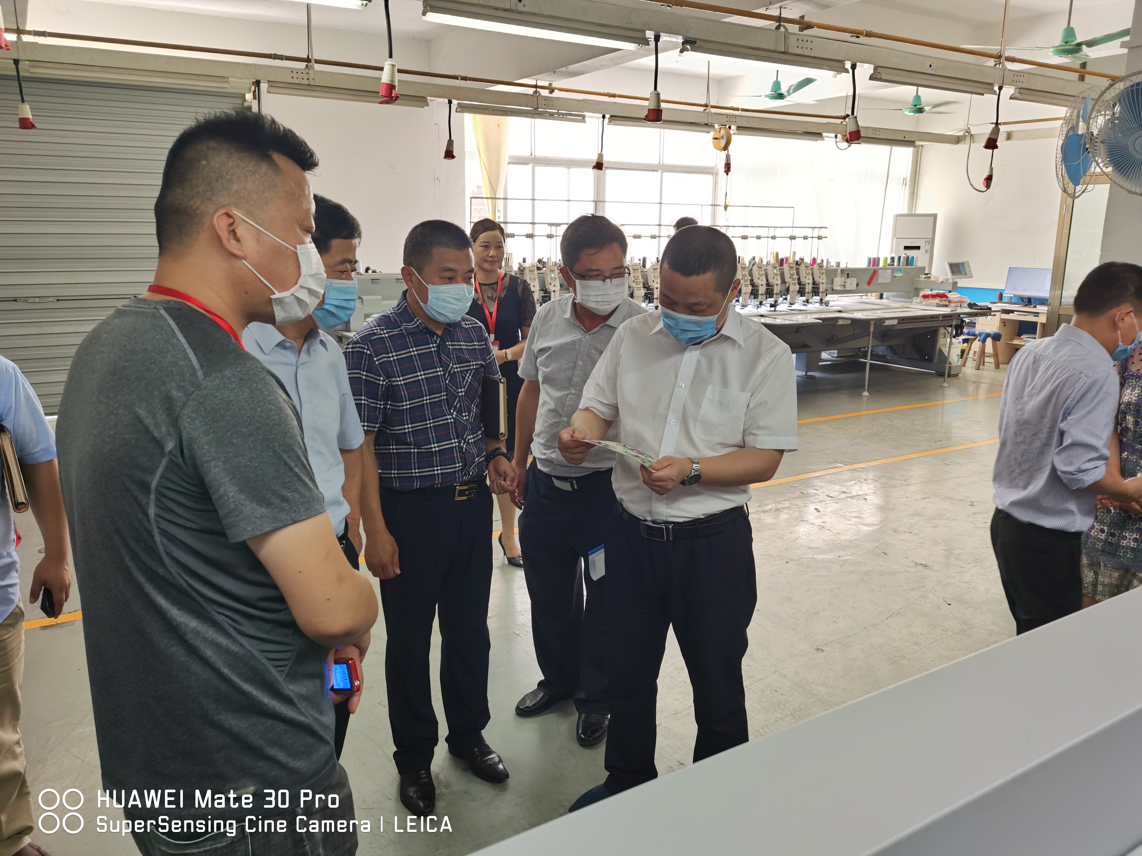 At 10:00 a.m. on June 18, 2020, Secretary Peng of Anfu county Party committee of Jiangxi Province and his delegation visited Dongguan Xinhong Sports Technology Co., Ltd. for inspection. The general manager Mr. Xu Yifeng of Xinhong, and the assistant manager level cadres of the company gave a warm reception, and went into the office area, innovation research and development center, 3D hot pressing workshop and fusing hot pressing workshop to inspect various works, checked our company in detail Personnel management, safety production, product quality and work flow, etc. At first, leaders came to Xinhong public office area to see the company's development process, management system and future development plan. Leaders pointed out some suggestions and opinions for this purpose, hoping that the company could be further improved in future development. Then, followed the step of general manager Xu, everyone came to our innovation research and Development Center for investigation. General manager Xu explained to the leaders of the whole 3D printing technology, computer three-dimensional embroidery innovative production and process,the leaders gave great praise to the whole production process.